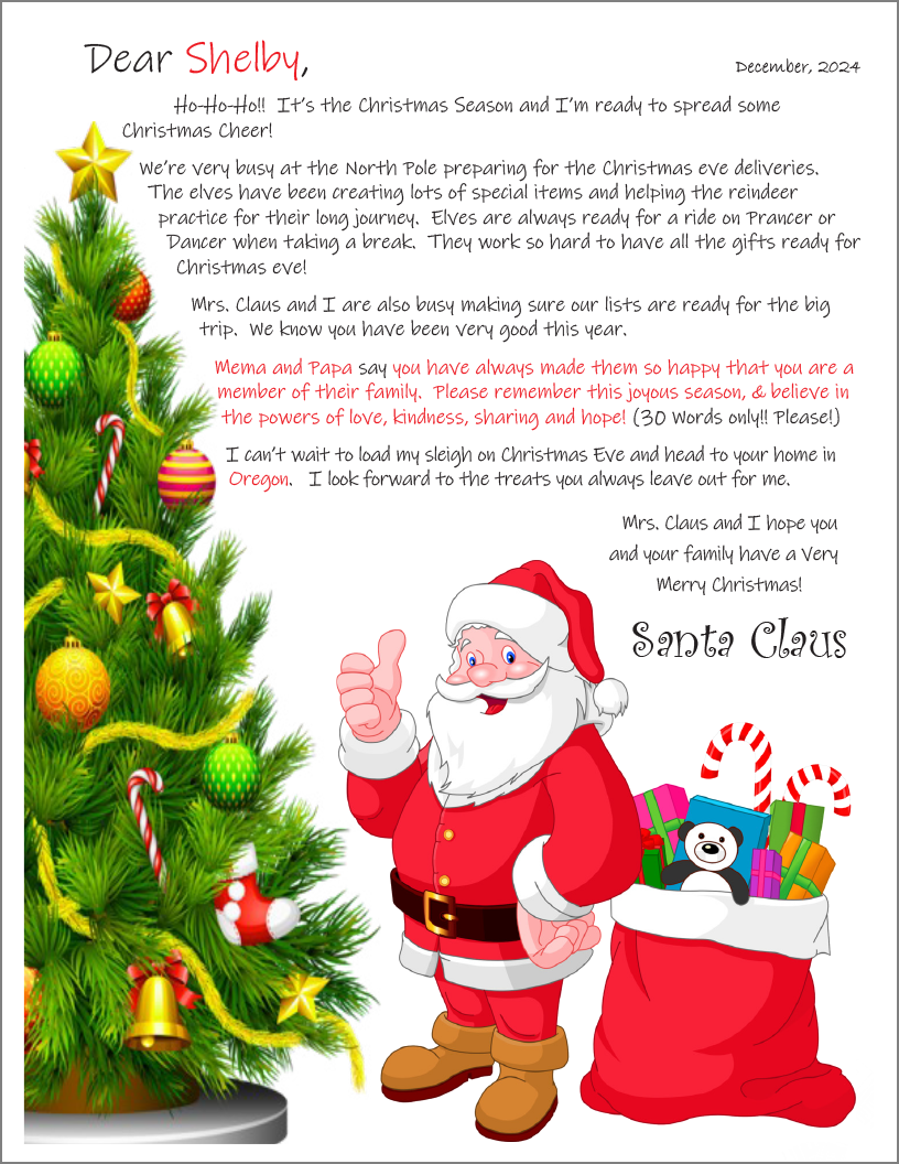 Send a customized letter from Santa to a recipient of your choice